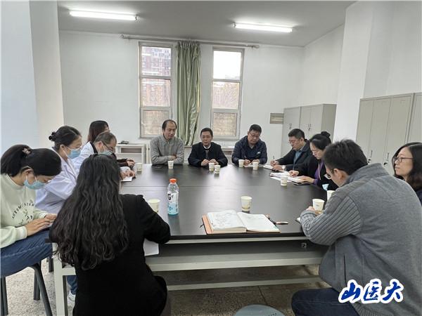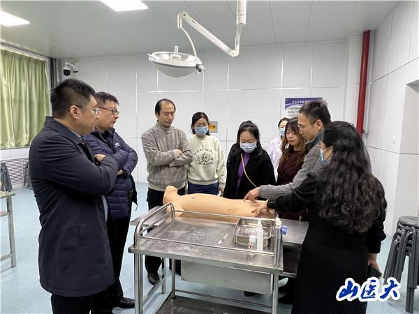 教务部一行了解了医学模拟教育发展情况、本科生临床技能教学训练场所建设情况和学生上课实训情况。调研会上,晋建华、孟彩霞、童玲分别就学生临床技能训练场软硬件建设、人才培养方案及课程大纲修订等内容提出了问题和中肯的建议。